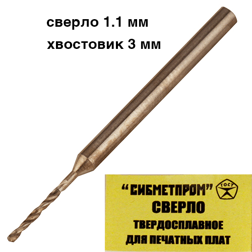 Сверло твердосплавное диаметр 1.1 мм хвостовик 3 мм для печатных плат