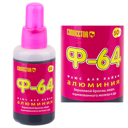 Флюс Ф-64 CONNECTOR, 50 мл — для пайки алюминия, бериллиевой бронзы, меди, оцинкованного железа