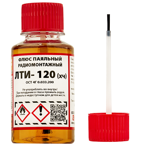 Флюс марки ЛТИ-120 (Ленинградский технологический институт) является одним из самых популярных и проверенных составов для пайки в радиоэлектронной промышленности и быту. Данный продукт расфасован в удобный флакон 100 мл с кисточкой, что исключает необходимость использования дополнительных инструментов.