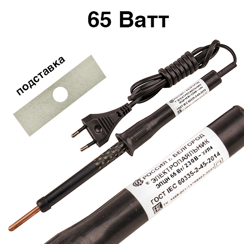 Паяльник 65Вт ЭПЦН с пластиковой ручкой и медным жалом — классический инструмент для профессионального и домашнего радиомонтажа.