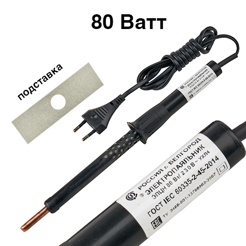 Паяльник соответствует стандарту безопасности ГОСТ IEC 60335-2-45-2014. Модель ЭПЦН 80Вт/230-УХЛ4 рассчитана на напряжение 220 В и станет незаменимым помощником в мастерской, при ремонте бытовой техники, электромонтажных и радиолюбительских работах.